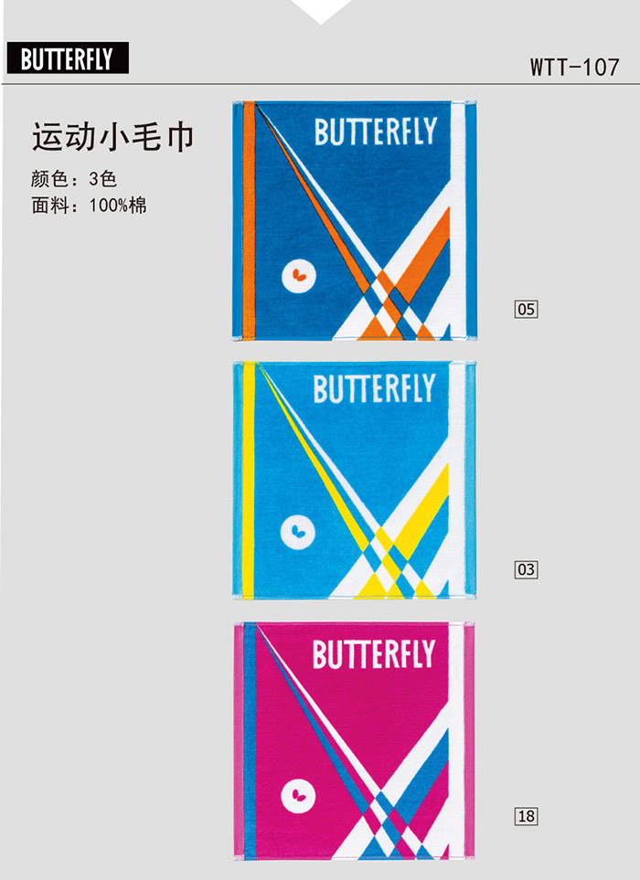 蝴蝶BUTTERFLY 新款運(yùn)動(dòng)汗巾 方巾 WTT-107-1 3色純棉 100%吸汗