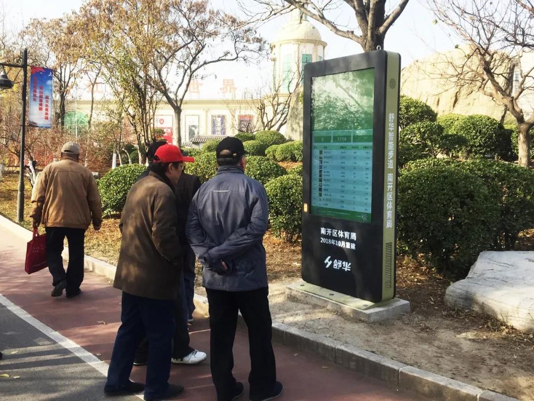 據(jù)進(jìn)一步了解,2018年,天津南開區(qū)健康主題公園內(nèi)設(shè)立了舒華智能健身步道,全長為1公里,主要由人流量探測系統(tǒng)、步道定位工作站、健康互動大屏、健康心率柱、室外環(huán)境監(jiān)測器以及來一場“智能步道”系統(tǒng)等組成。途中每隔一段距離都會配有一個舒華健康心率柱,人們在運動間歇握住柱子上的心率觸摸鍵時,即可檢查自己的運動強度與狀態(tài),了解自身健康情況,十分方便、人性化。