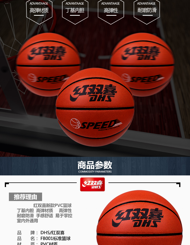 紅雙喜FB001 PVC 籃球 耐磨吸汗吸濕室內(nèi)室外比賽PVC籃球7號球