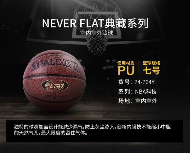 斯伯丁籃球74-764Y NEVER FLAT系列典藏室內室外PU皮籃球