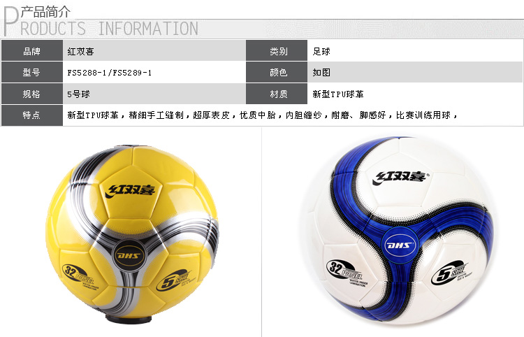 紅雙喜足球FS5288-1 訓(xùn)練比賽用品牌新型革材質(zhì)耐磨5號成人足球FS5288-1