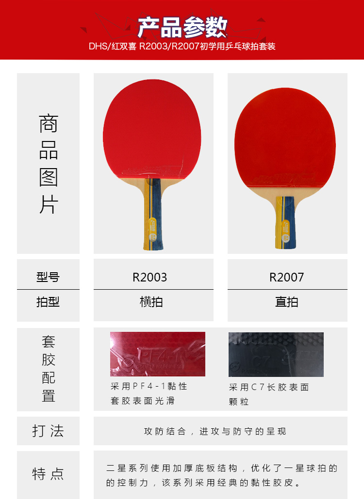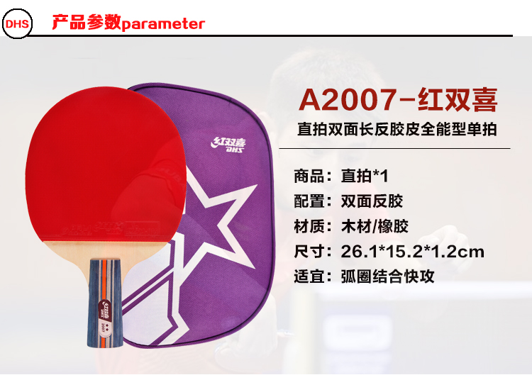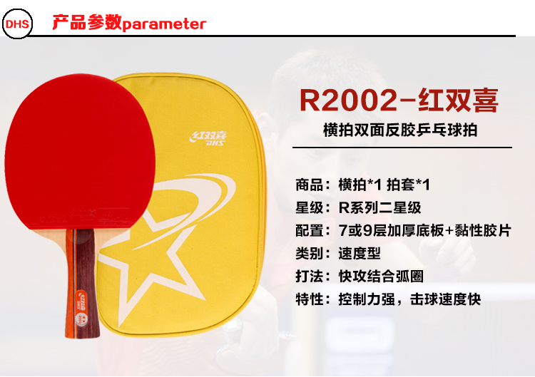 紅雙喜(DHS) R2002-R2003-R2006-R2007二星乒乓球拍