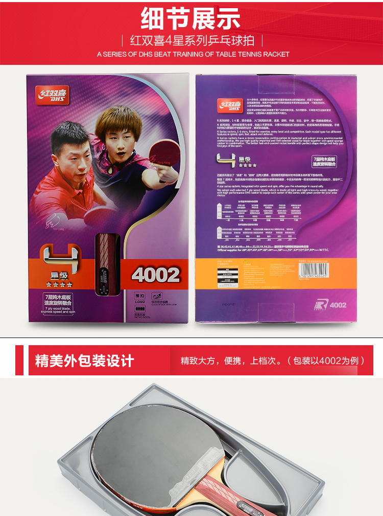 紅雙喜(DHS) R4002-R4003-R4006-R4007四星乒乓球拍