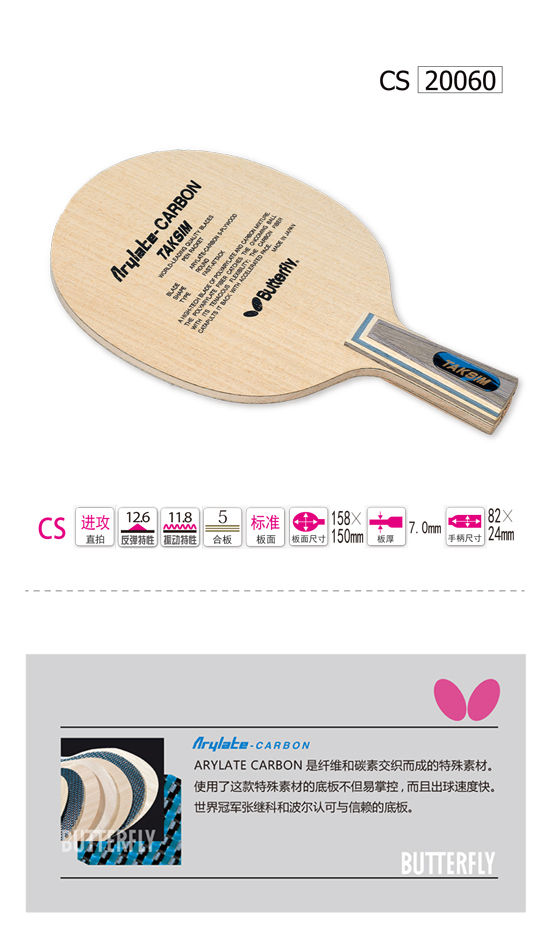 Butterfly蝴蝶20060 蝴蝶王直板(泰克西姆TAKSIM-CS)乒乓底板 經(jīng)典乒乓球拍