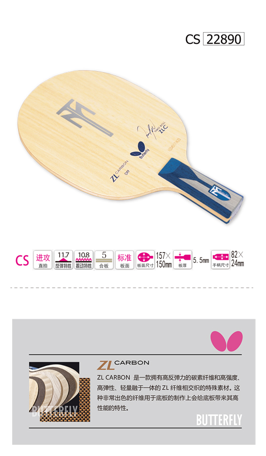 Butterfly蝴蝶22890 乒乓底板Timo Boll-ZLC(波爾ZL-CARBON) 波爾經(jīng)典球拍