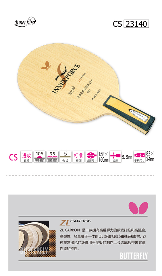 Butterfly蝴蝶23140 乒乓球底板全木碳纖維 INNERFORCE ZLC 直板進攻型