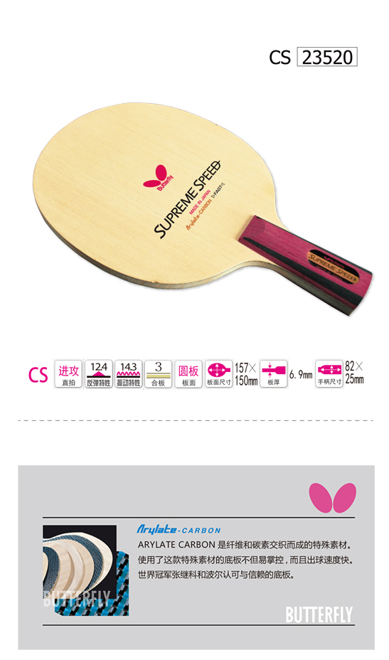 Butterfly蝴蝶23520 SUPREME SPEED 極速乒乓底板(蝴蝶中國10周年紀念款)