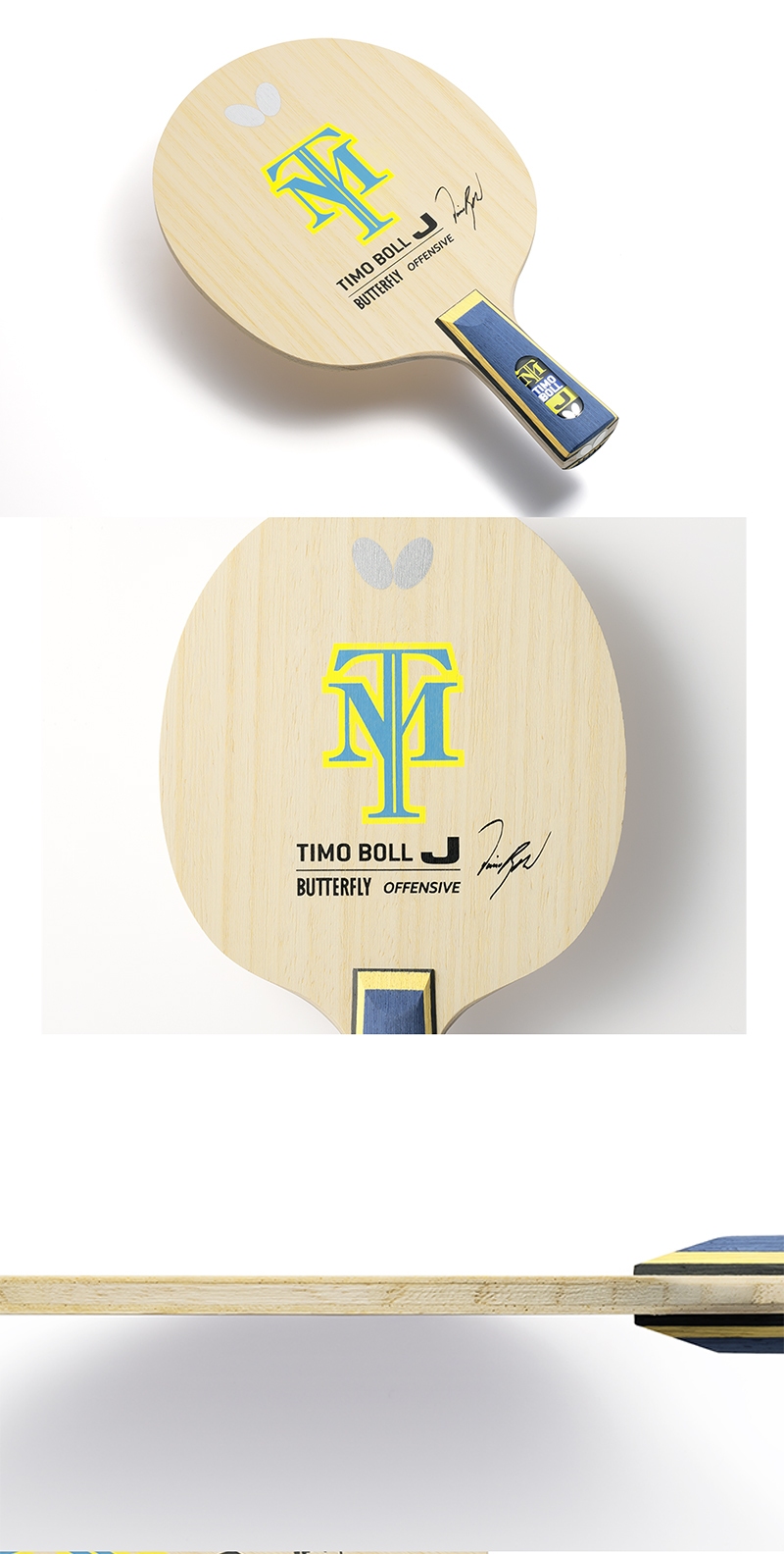 Butterfly蝴蝶23970 TIMO BOLL J-CS乒乓球純木底板重量輕,板面小 適合兒童的細(xì)型手柄