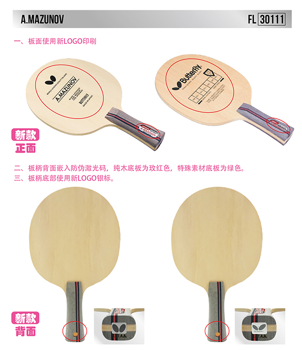 Butterfly蝴蝶30111 乒乓球拍底板 A-MAZUNOV-FL 馬祖諾夫橫拍