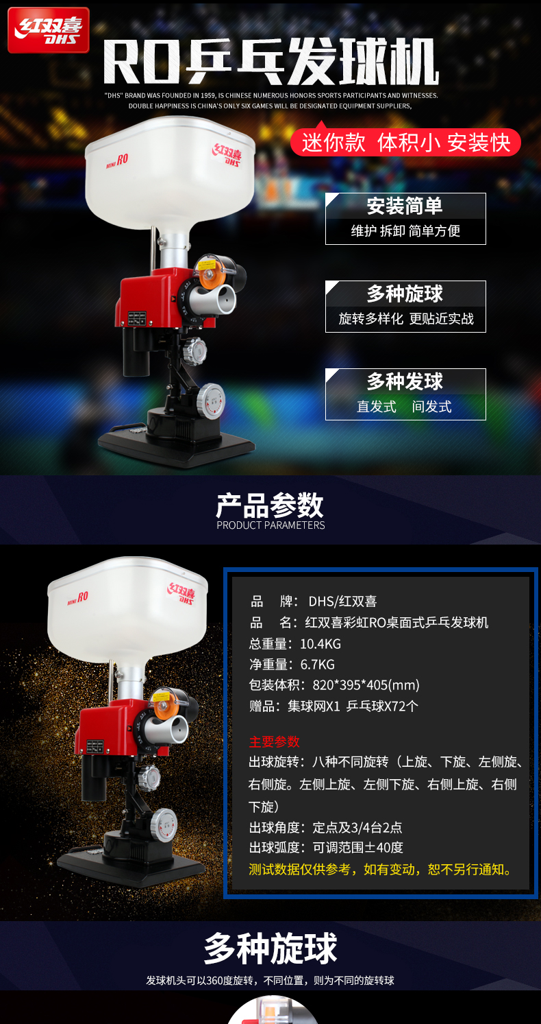 紅雙喜(DHS) R0桌面式訓練乒乓球發(fā)球機