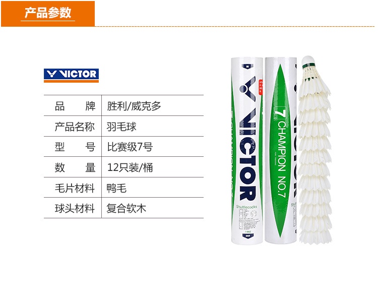 威克多VICTOR 勝利比賽7號羽毛球 穩(wěn)定耐打 12只裝