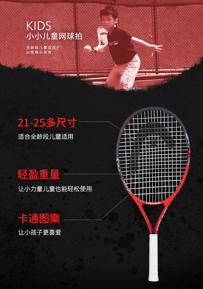 HEAD海德單人雙人專業(yè)小學(xué)生訓(xùn)練初學(xué)者兒童青少年初學(xué)一體網(wǎng)球拍