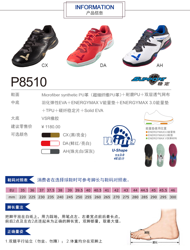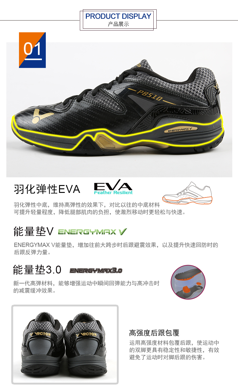 VICTOR勝利羽毛球鞋P8510 維克多男女鞋透氣耐磨防滑穩(wěn)定型