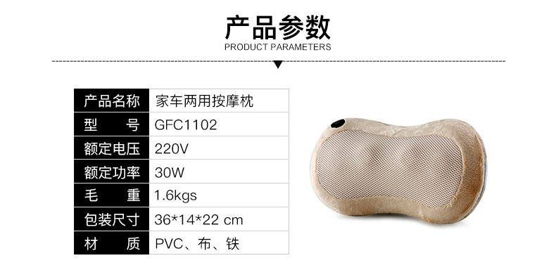 好家庭奧適頸椎多功能按摩器頸部腰背肩部按摩枕家用腰椎儀車家兩用加熱按摩正反按摩 1102