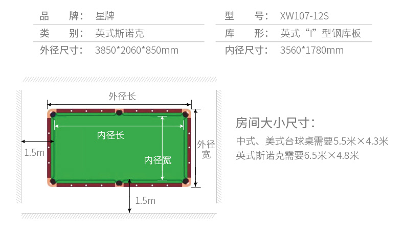星牌 臺球桌 XW106-12S英式標(biāo)準(zhǔn)斯諾克俱樂部用臺