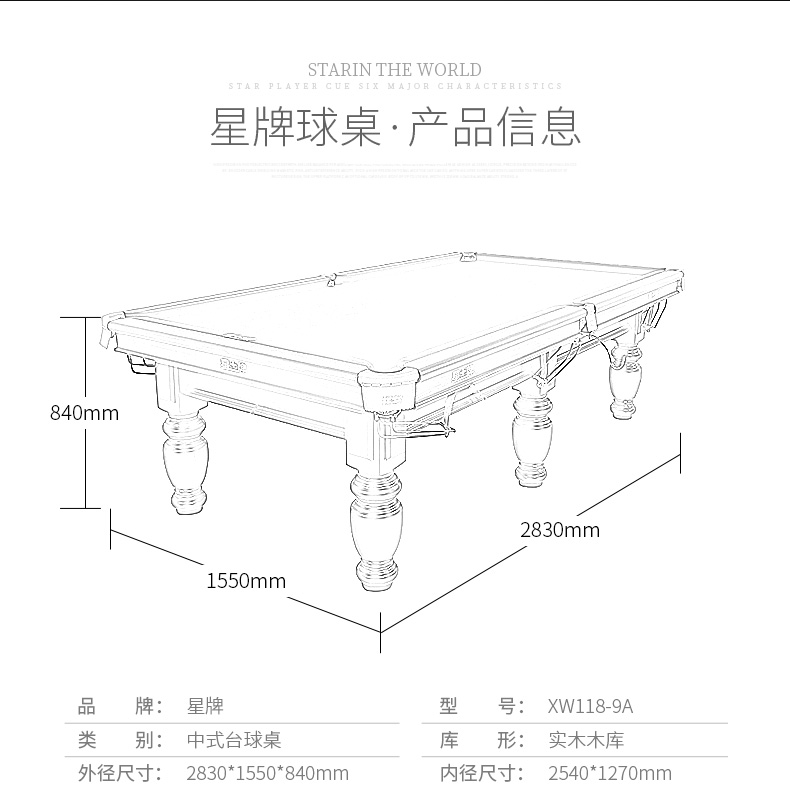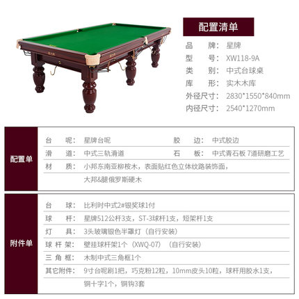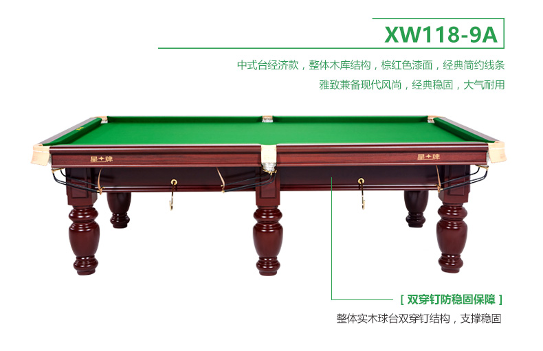星牌 臺球桌 XW118-9A中式黑八球臺
