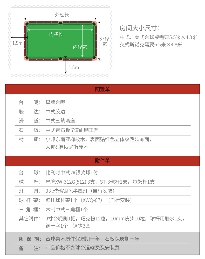 星牌 臺球桌 XW119-9A中式黑八俱樂部比賽球臺