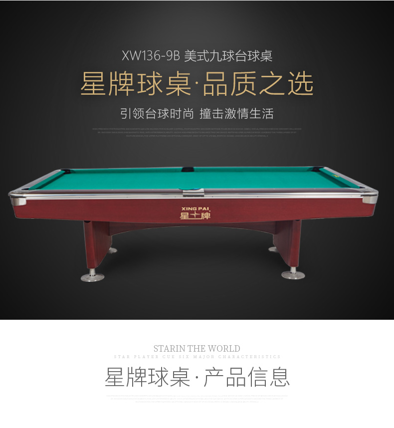 星牌 臺(tái)球桌 XW136-9B美式九球公開賽用臺(tái)