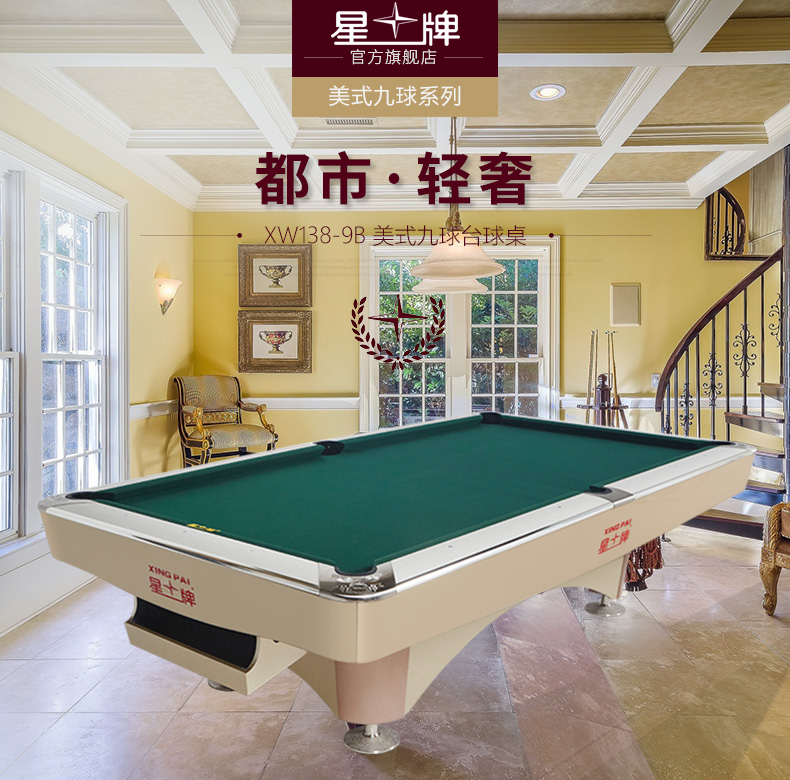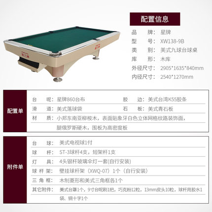 星牌 臺(tái)球桌 XW138-9B美式九球臺(tái)
