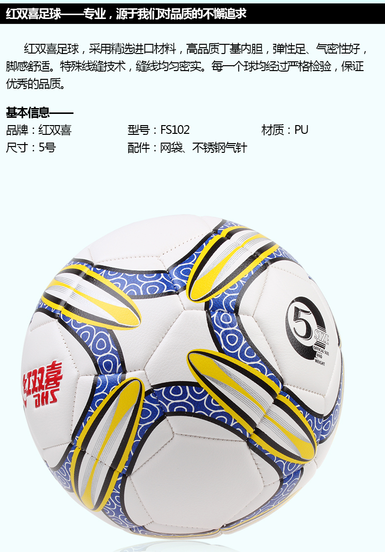 紅雙喜足球FS102 牛皮紋5號(hào)標(biāo)準(zhǔn)十一人制校園足球標(biāo)準(zhǔn)足球