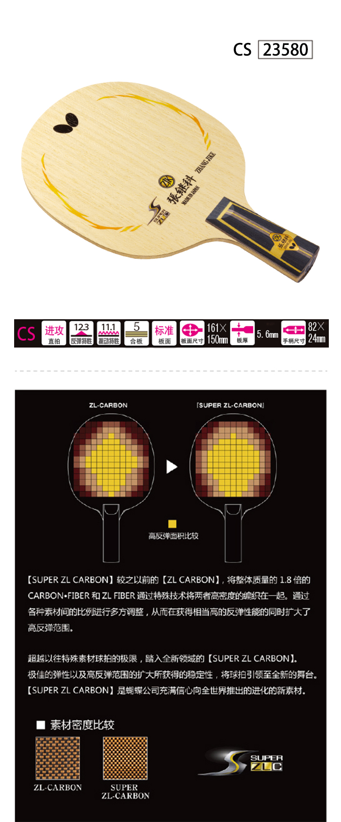 Butterfly蝴蝶23580 張繼科超級ZLC(張繼科SUPER ZLC)乒乓球底板 蝴蝶高性能底板