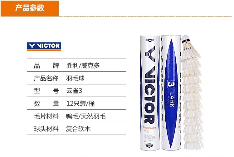 威克多VICTOR 勝利云雀3號LARK3羽毛球 訓(xùn)練用羽球 穩(wěn)定耐打 12只裝