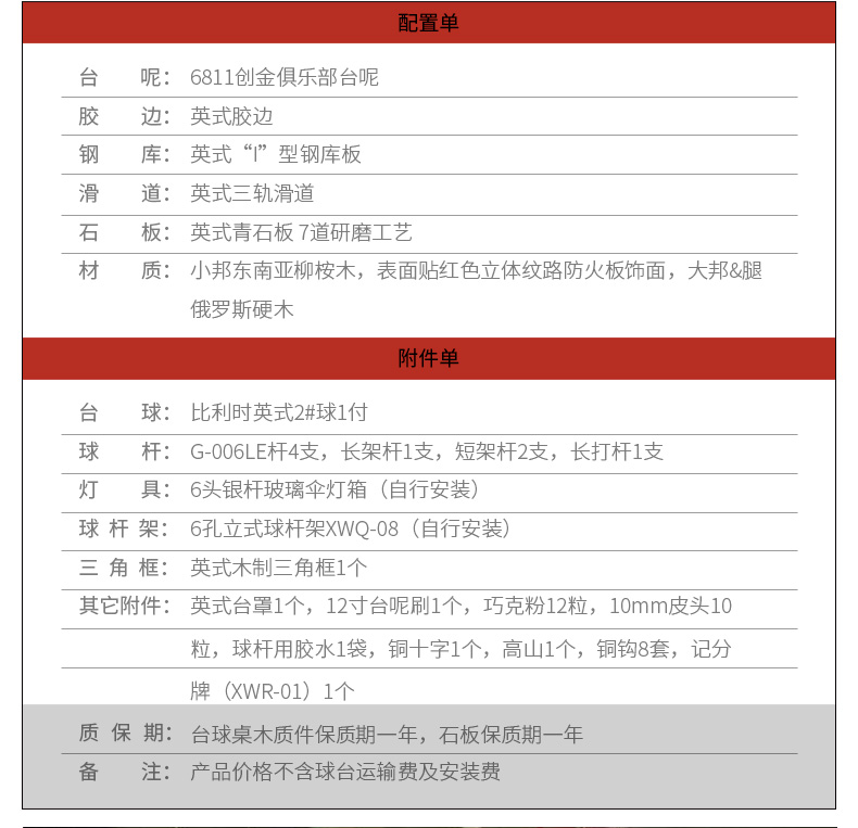 星牌 臺(tái)球桌 XW106-12S英式標(biāo)準(zhǔn)斯諾克俱樂部用臺(tái)